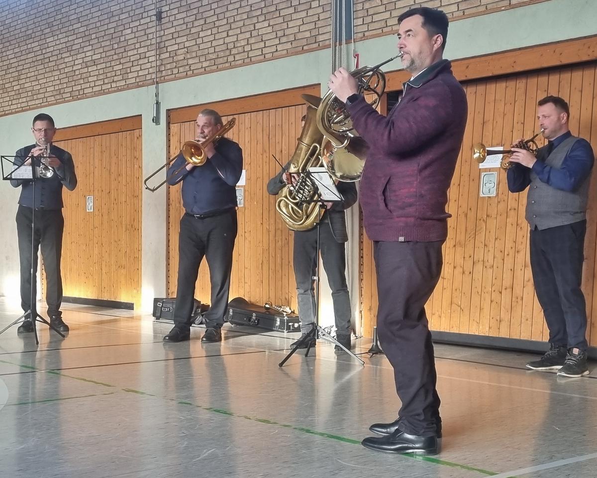 Am 5. Dezember ertönten ungewöhnliche Klänge in der Turnhalle. Das Bläserquintett aus Riga spielte uns mit ihren Blechblasinstrumenten Weihnachtslieder. Mitsingen und Tanzen war ausdrücklich erlaubt!