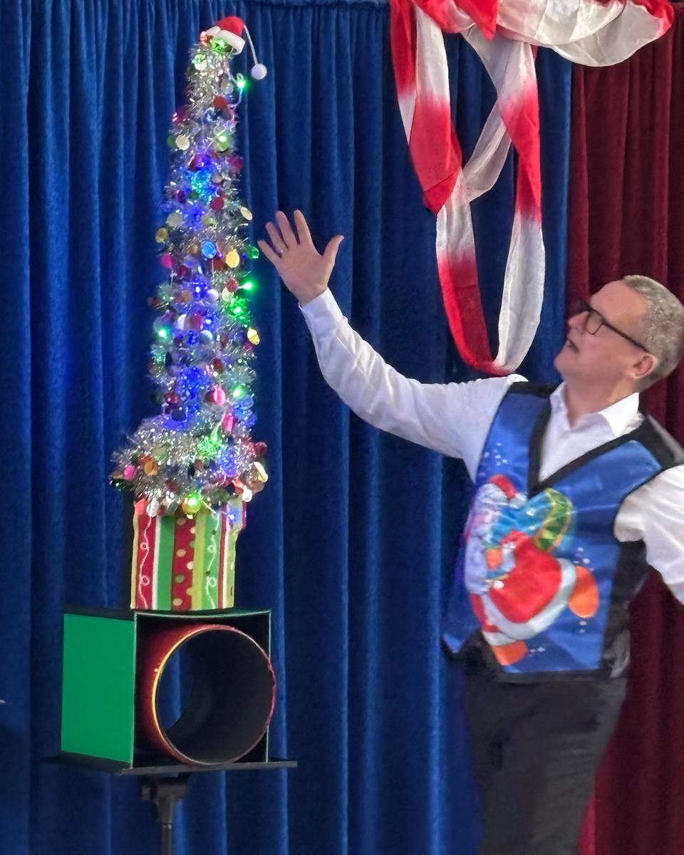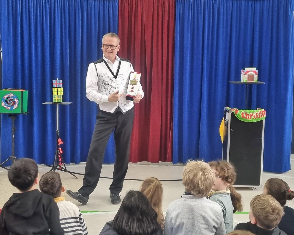 Am 10. Dezember wurden wir verzaubert. Große und kleine Zauberkunststücke führte Frank Wessels uns in seiner Weihnachts-Zauber-Show vor. Mit viel Witz und Charme schaffte er es, uns mehrere Male zu verblüffen. Dabei haben wir doch versucht, alle genau hinzugucken und den Trick zu verstehen! Zauberei…