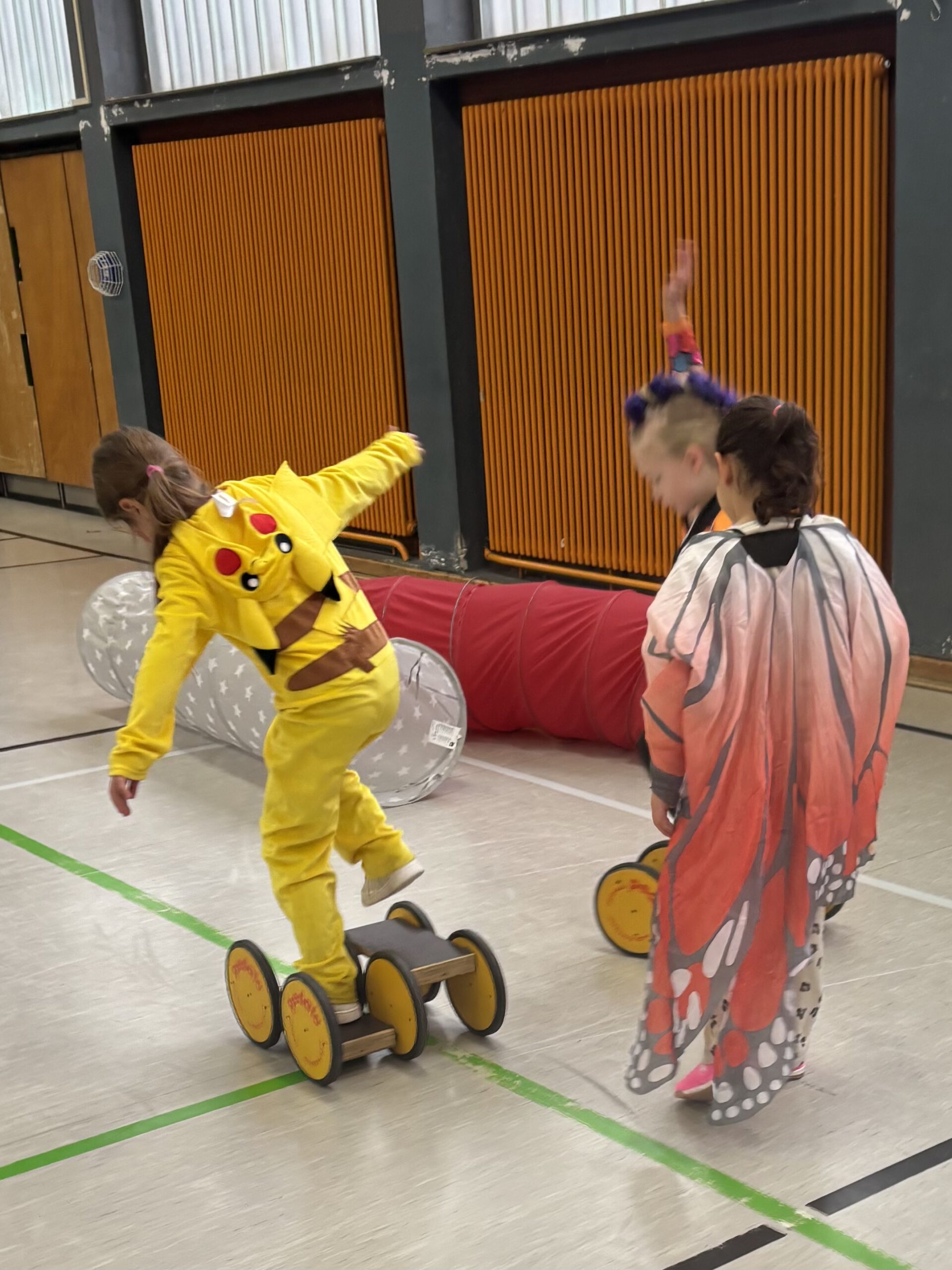 Wenn schon morgens fröhliche Musik durch die Lautsprecher klingt, Kinder und Erwachsene bunt und lustig verkleidet durch die Schule laufen, dann ist wieder Fasching. Die Klassenräume waren toll geschmückt, die Eltern hatten leckerstes Essen zum Büffet beigesteuert und die Turnhalle wurde zur Bewegungslandschaft. Der Lieblingstag vieler Kinder. Wer spielt, nascht und tanzt nicht gerne den ganzen Schulvormittag.