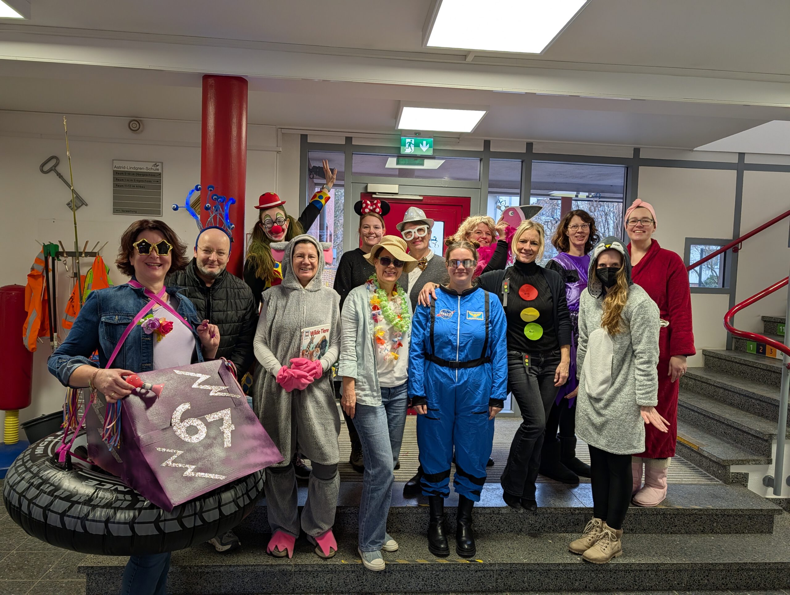 Heute besuchten viele Tiere, Zauber- und Fantasiewesen und viele außergewöhnliche Menschen die Schule. Das kann nur bedeuten, dass wir Fasching feiern!